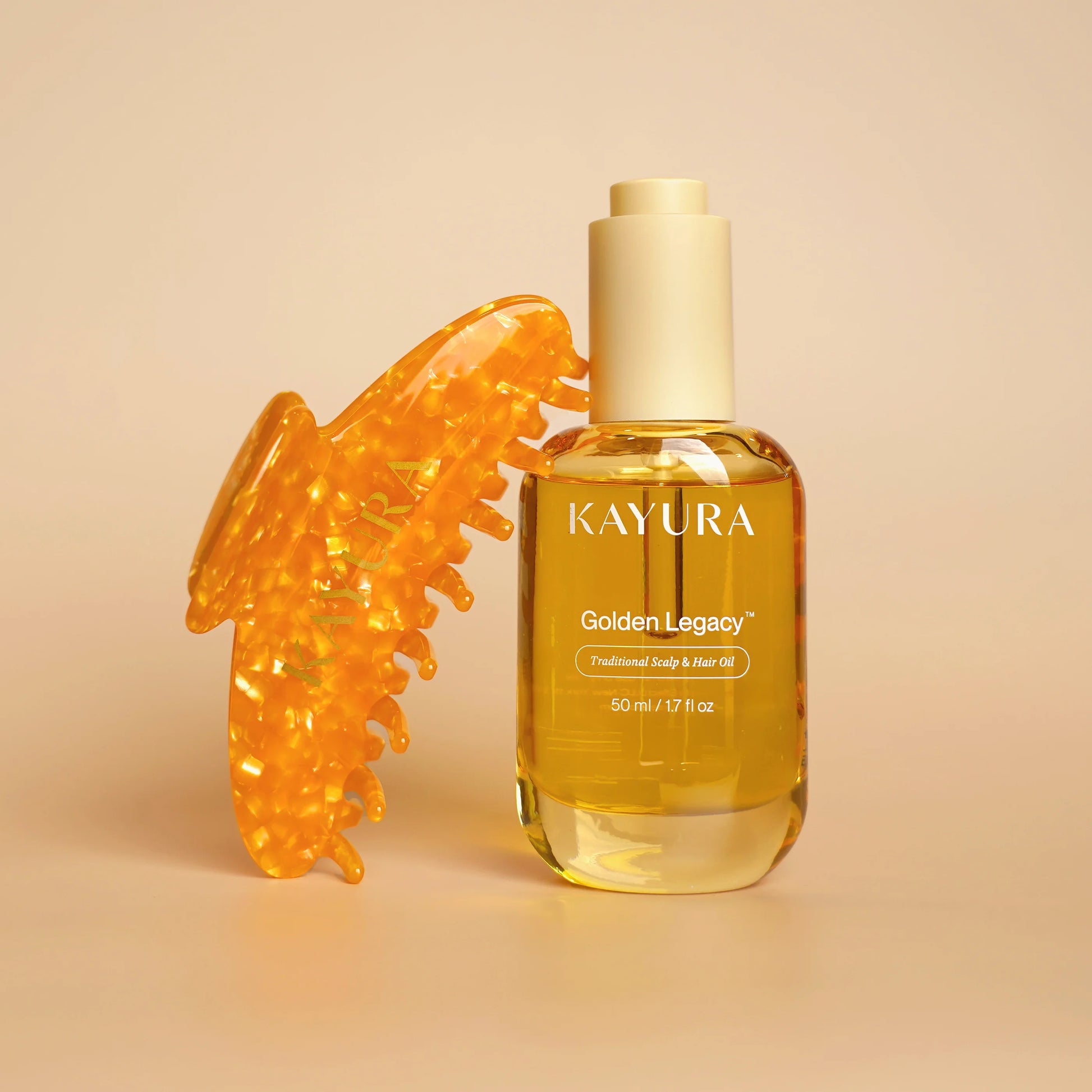 The Golden Legacy™ Claw Clip is a must-have for effortless, on-the-go style. Its firm yet comfortable double-tooth grip holds your hair securely with a sleek, zero-tension design. Embossed with the Kayura logo on both sides, it’s the perfect finishing touch after your Golden Legacy™ hair ritual.